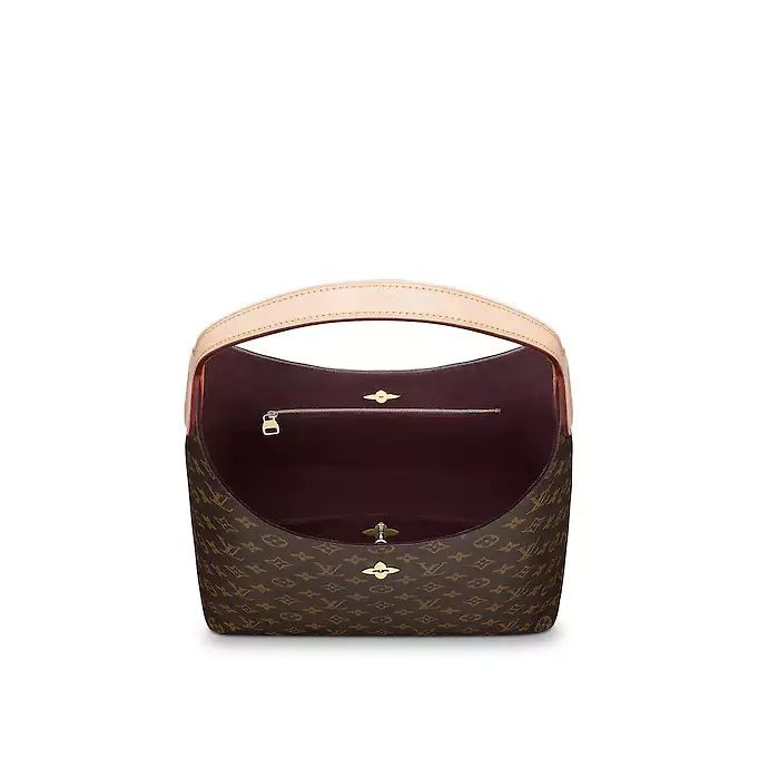 This casual-chic hobo style in the Maison’s iconic canvas features a Monogram Flower padlock in shiny golden metal