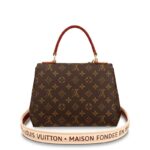A printed leather strap lends an edgy twist to this Cluny BB handbag, crafted from classic Monogram canvas. Worn cross-body or carried in ladylike fashion by its top handle, this timeless bag is designed for busy lifestyles. It opens wide for easy access to the smartly organized interior, while the magnetic flap and zipped inner pocket keep belongings secure.