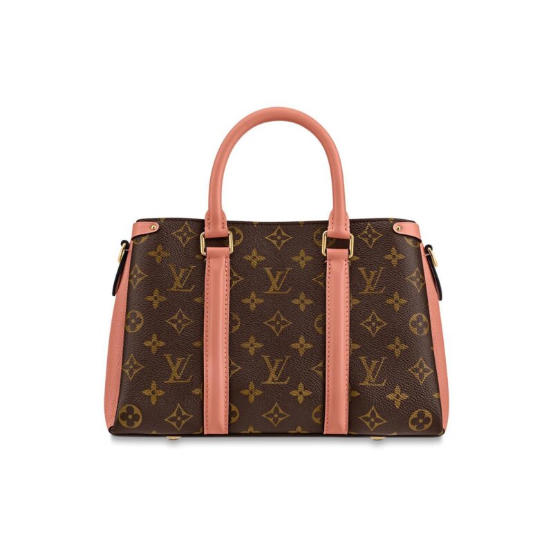 The fashionably petite Soufflot BB is crafted from supple Monogram canvas, with gussets and trim of rich, colored leather and a coordinating colored lining. With its vertical bands and name tag, it nods to the Keepall, a House icon. Refined and timeless, it can be carried cross-body, on the shoulder, by hand, or in the crook of the arm.