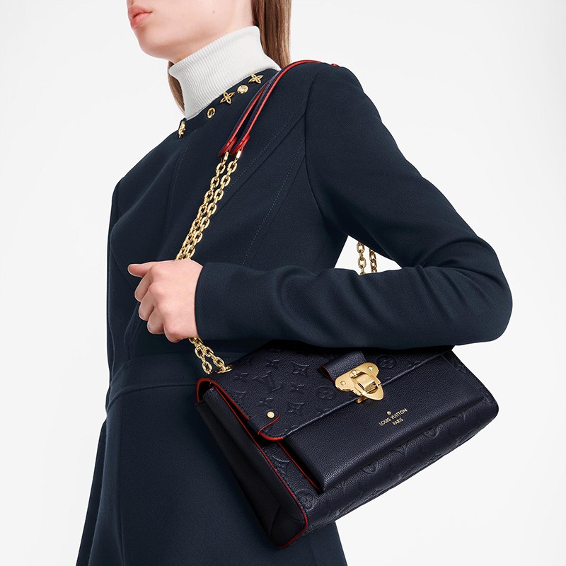 Crafted from a sophisticated mix of smooth and embossed Monogram Empreinte leather, the Vavin PM handbag is signed with a bold, shiny statement lock. Supple and lightweight, it is a chic yet relaxed model that moves with ease from day to evening. The adjustable chain-and-leather handle adapts to shoulder or cross-body wear.