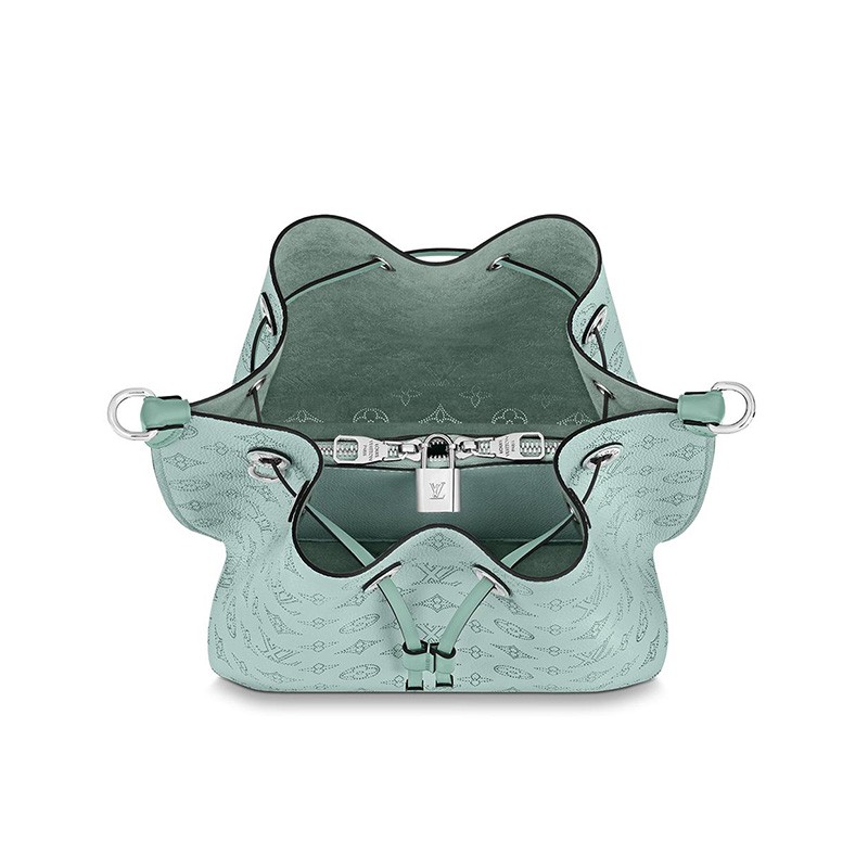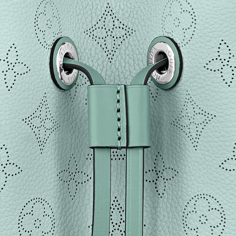 The Muria bucket bag is made from Mahina calf, a perforated leather with a discreet Monogram motif. Supple and sophisticated, it is a pleasure to carry, either by the braided top handle or the long leather strap, which adjusts for short- and long-shoulder or hands-free cross-body wear. Crafted signature details include a name tag and keybell in smooth calfskin.