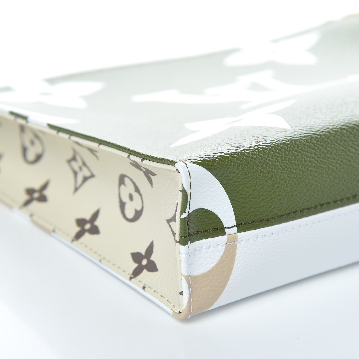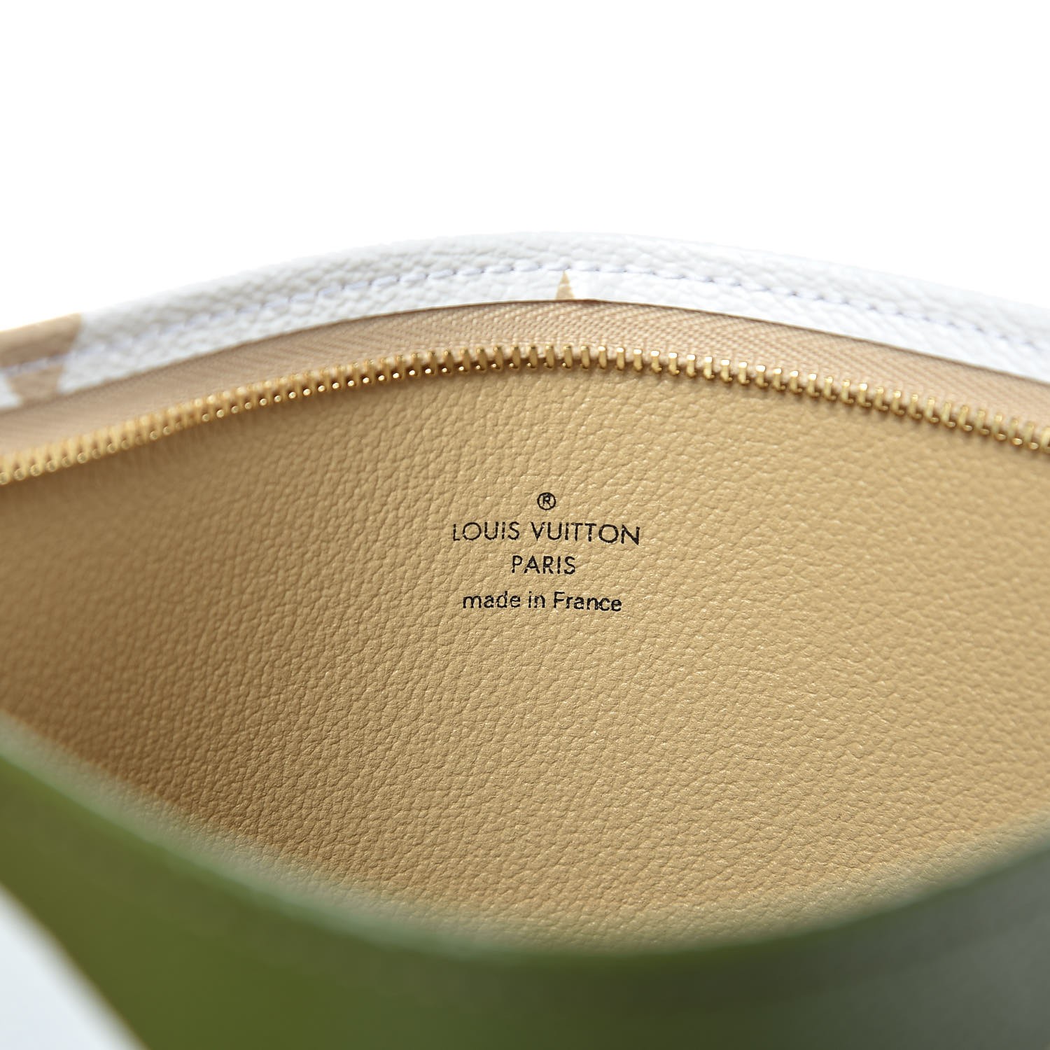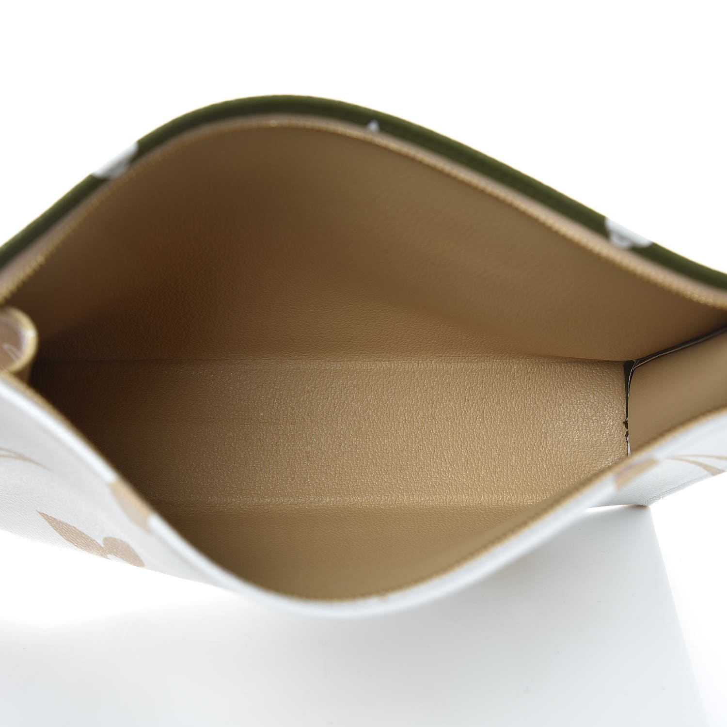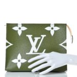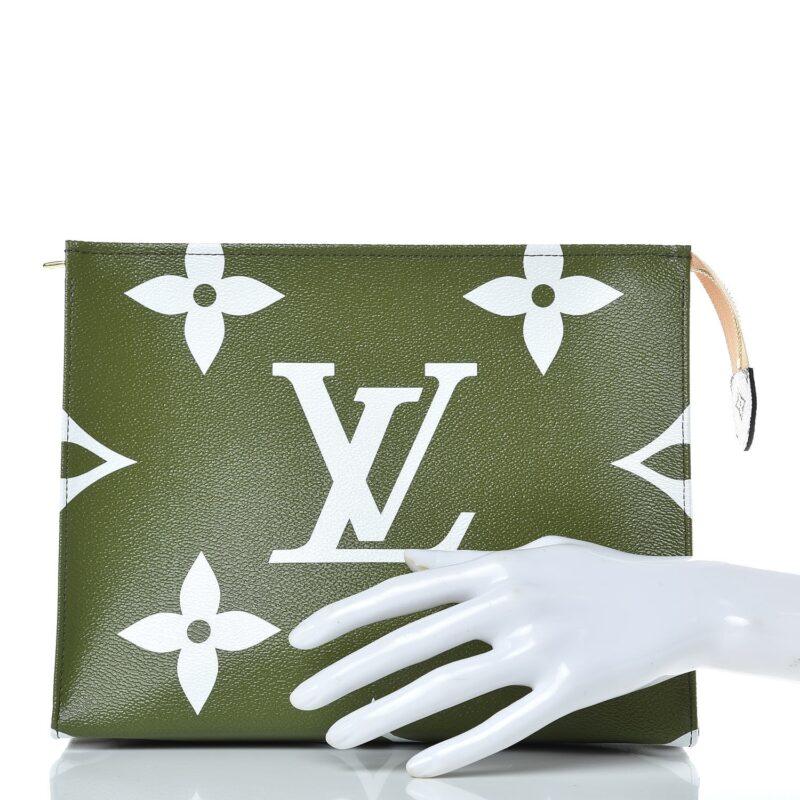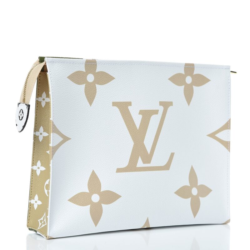 This large limited edition accessory travel case is crafted of different sizes of monogram canvas in beige, green, and white. The top brass zipper opens to a beige leather-like interior. This chic case is ideal for all your travel needs, with the luxury and style by Louis Vuitton!