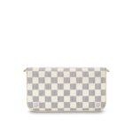 With its two removable interior pockets, the elegant Pochette Felicie in Damier Azur canvas is the stylish solution to carry and organise all your daily essentials. Much more than a wallet, it can be transformed into a glamourous shoulder bag or clutch thanks to its removable golden chain.