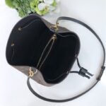 10.2 x 8.7 x 10.8 inches•Monogram coated canvas•Colorful calf-leather trim•Colorful bonded microfiber lining•Gold-color metal hardware•Drawstring closure•Adjustable long strap with press studs•Inside zipped pocket