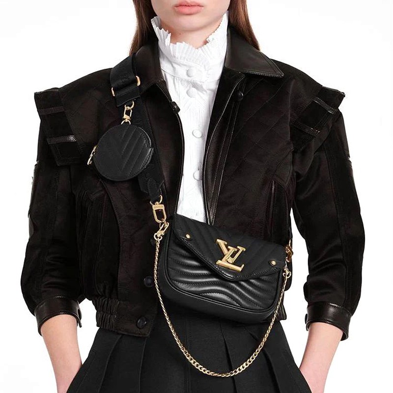 Arriving potentially in June 2020 is the Louis Vuitton New Wave bag in the popular Multi-Pochette format. This is the third version of the popular bag, it also was featured in the denim patchwork in Spring 2020 for a capsule collection. The new bag will be featured in four colors, Black, Hunter Green, Pink and White. It features the signature canvas strap but in the updated cursive logo font with the coin purse in the new wave chevron design.