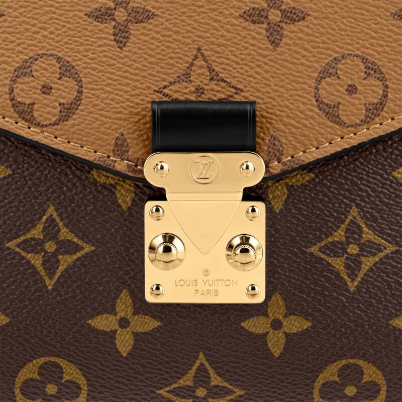 With its distinctive satchel silhouette, the Pochette M¨¦tis bag has become an object of fashion desire. This compact, go-everywhere model in trendy Monogram Reverse canvas features a signature S-lock closure with a gleaming gold-tone finish. Versatile and surprisingly roomy, it is fitted with a chic top handle and a long removable strap for shoulder or cross-body wear.