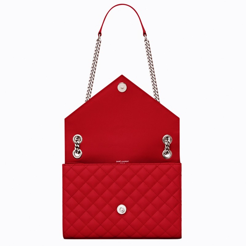 MONOGRAM SAINT LAURENT BAG WITH FRONT FLAP, ADORNED WITH METAL INTERLOCKING YSL INITIALS LEATHER AND CHAIN STRAP, AND HORIZONTAL AND VERITCAL QUILTED OVERSTITICHING.